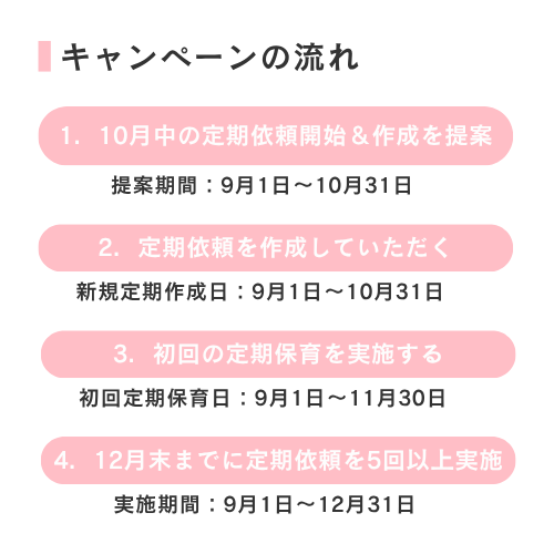 初回定期保育日:9月1日~11月30日